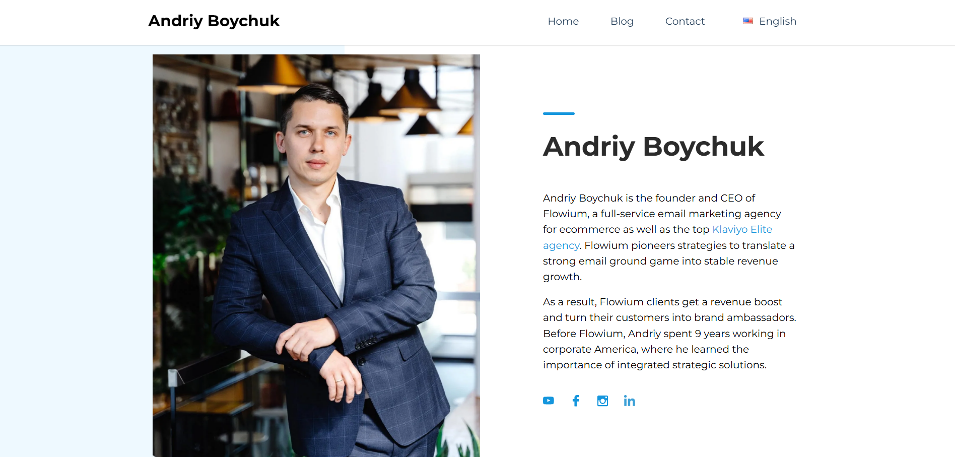 We created a modern and responsive website for Andriy Boychuk, helping him establish a strong personal brand in the digital space. Our team handled the full-cycle development — from design to launch — and implemented SEO best practices to increase online visibility and performance. The result is a fast, user-friendly platform that effectively communicates Andriy’s expertise and services.