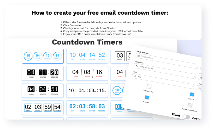 Read MoreWe developed a dynamic Count Down Timer tool for Flowium, designed specifically to boost customer engagement and drive conversions in email marketing campaigns. Our team built an intuitive interface that allows easy customization of email timers, seamless integration into email templates, and real-time updates. With this tool, Flowium can launch email campaigns that achieve better engagement, higher conversions, and improved marketing results.