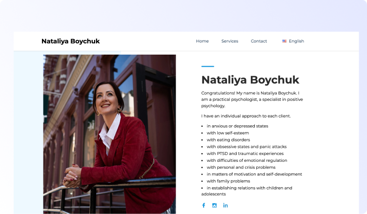 Read MoreWe created a professional portfolio website for Nataliya Boychuk to present her expertise and services in an elegant and structured way. The design is clean and modern, focusing on clarity and usability across all devices. We also added basic SEO settings and connected tools to help track site performance and traffic.