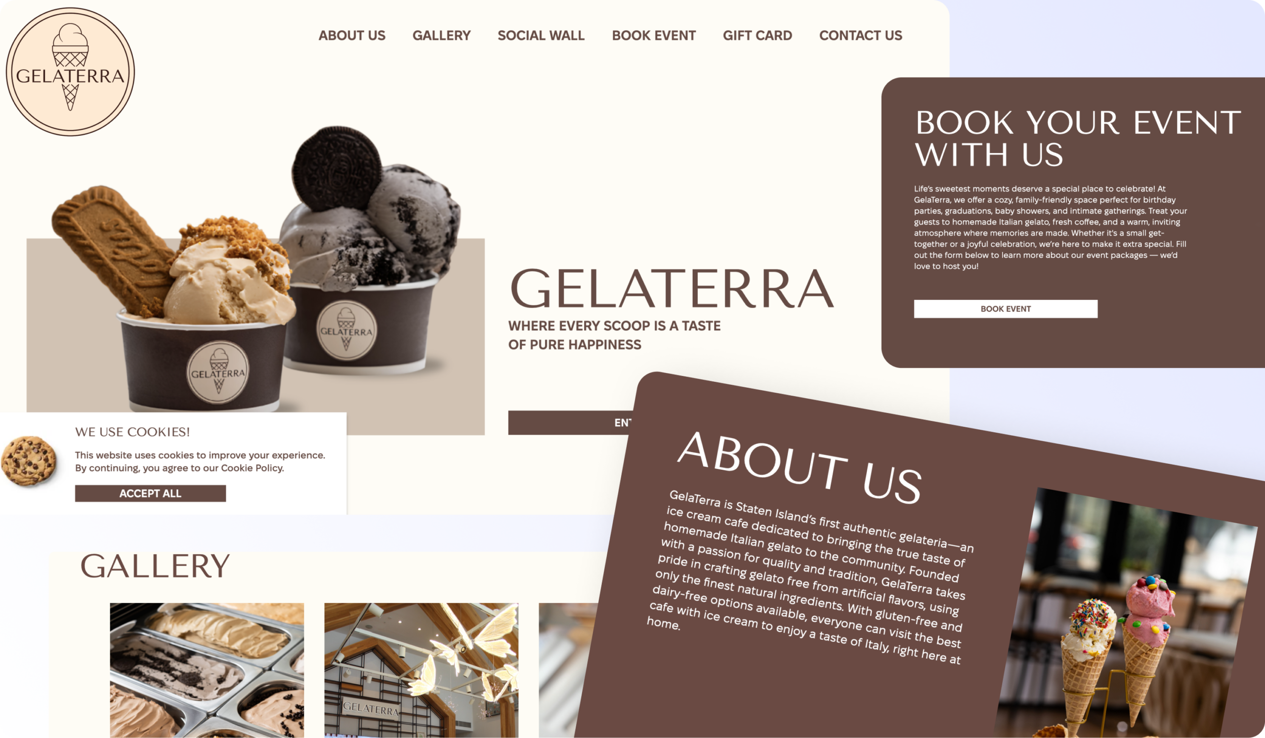 Read MoreWe helped Gelaterra bring their brand online with a modern, responsive website that highlights their handcrafted gelato and desserts. Our team designed an intuitive Ul and implemented a modern front-end architecture. The website is fast, mobile-friendly, and features smooth animations to enhance the user experience.