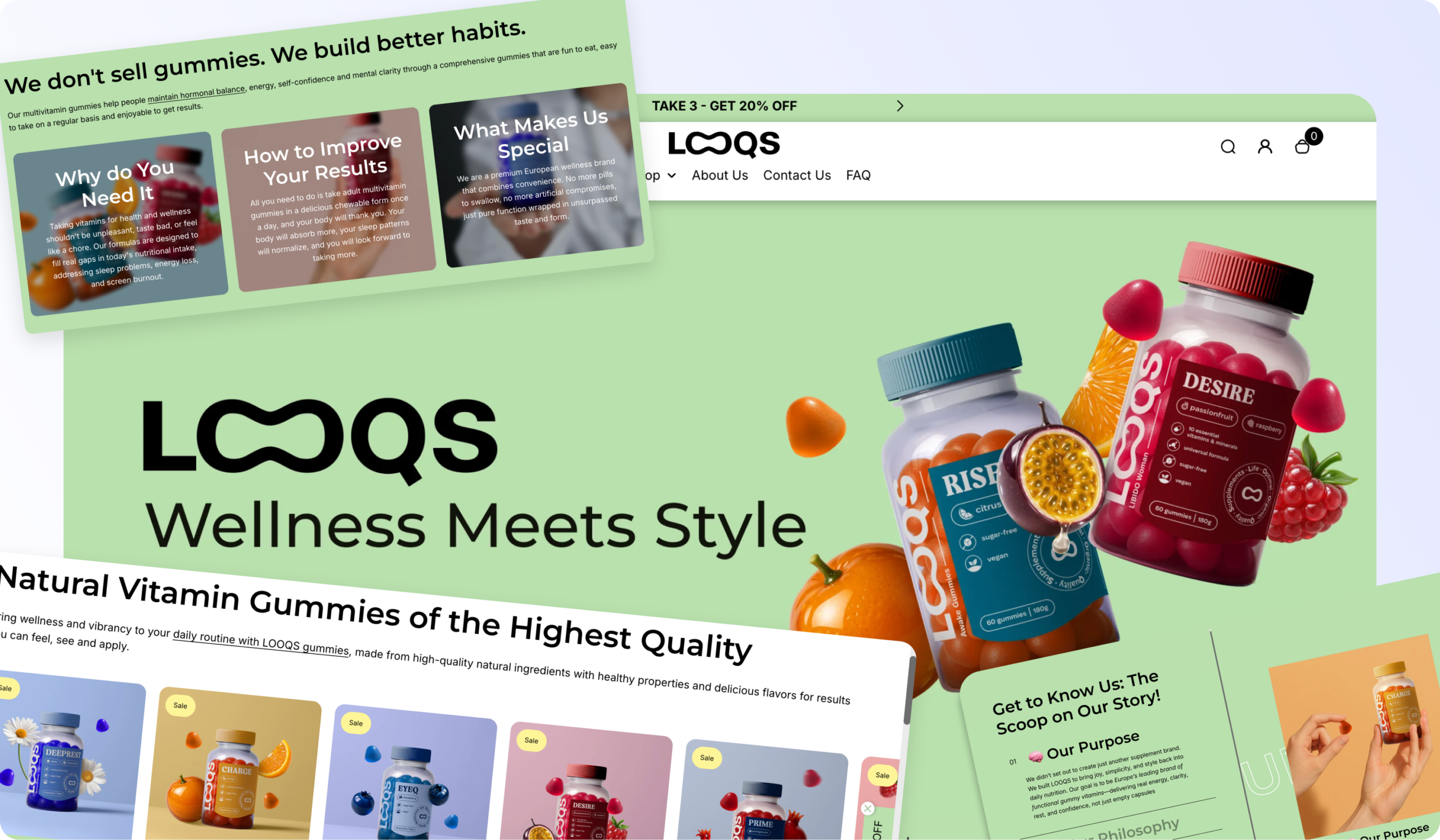 Read MoreWe created a conversion-focused content ecosystem for LOOQS, a new European gummy supplement brand. Our team wrote SEO-optimized copy for 7 SKUs, 4 bundles and all core pages in Shopify, defined structure, metadata, FAQs and internal links, and aligned clear benefit claims, brand voice and CTAs with EU/EFSA guidance for a compliant, search-ready DTC launch.